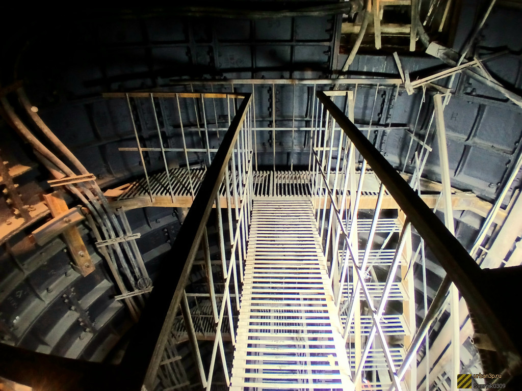 Внутри пусто, очень ржавые гермодвери, дизеля уже нет. Подтоплено по щиколотку, зимой замерзает и можно покататься на коньках.