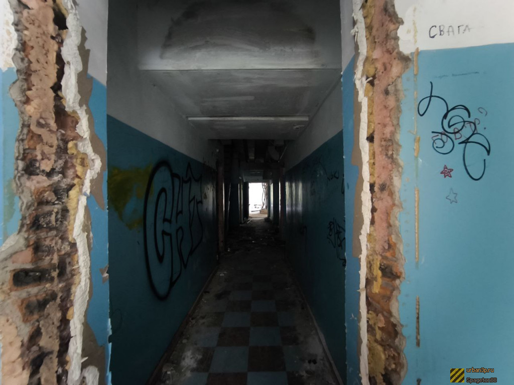 Типовое здание больницы. В настоящий момент выкуплено и постепенно разбирается. На объекте присутствует довольно специфическая охрана в виде сторожа, который не прочь выпить. Представляет собой рядовой недострой, поэтому специально ехать туда, наверно, не стоит, а вот по дороге можно зайти. С крыши здания открывается красивый вид.