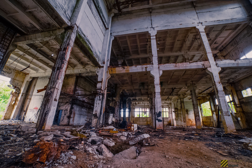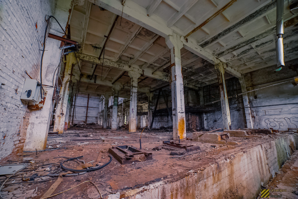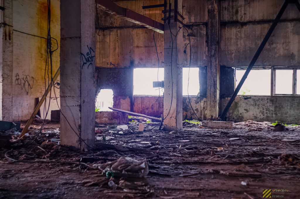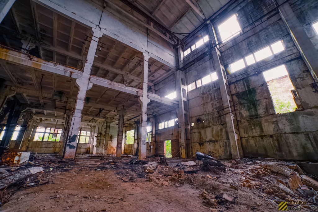 На территории находится большой цех с турбогенераторами и несколько мелких зданий. Вход через дыру в заборе со стороны железной дороги. Внимание, поезда! Очень часто курсируют.
