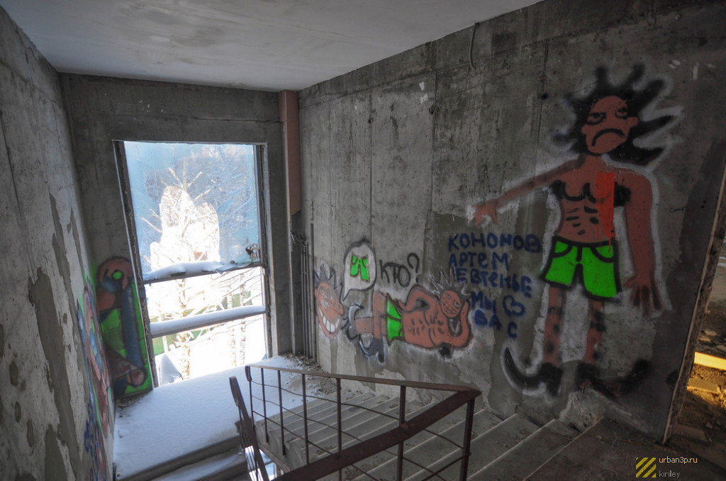 Построили сначала левый, потом правый. Не было сначала достаточно кирпича для левого. Потом каменщик с женой жил в новом правом, внизу, а вверху жил его сын. А левый подъезд сдавали внаем
