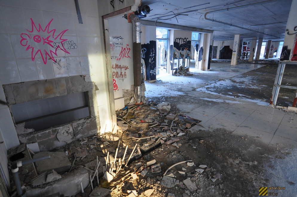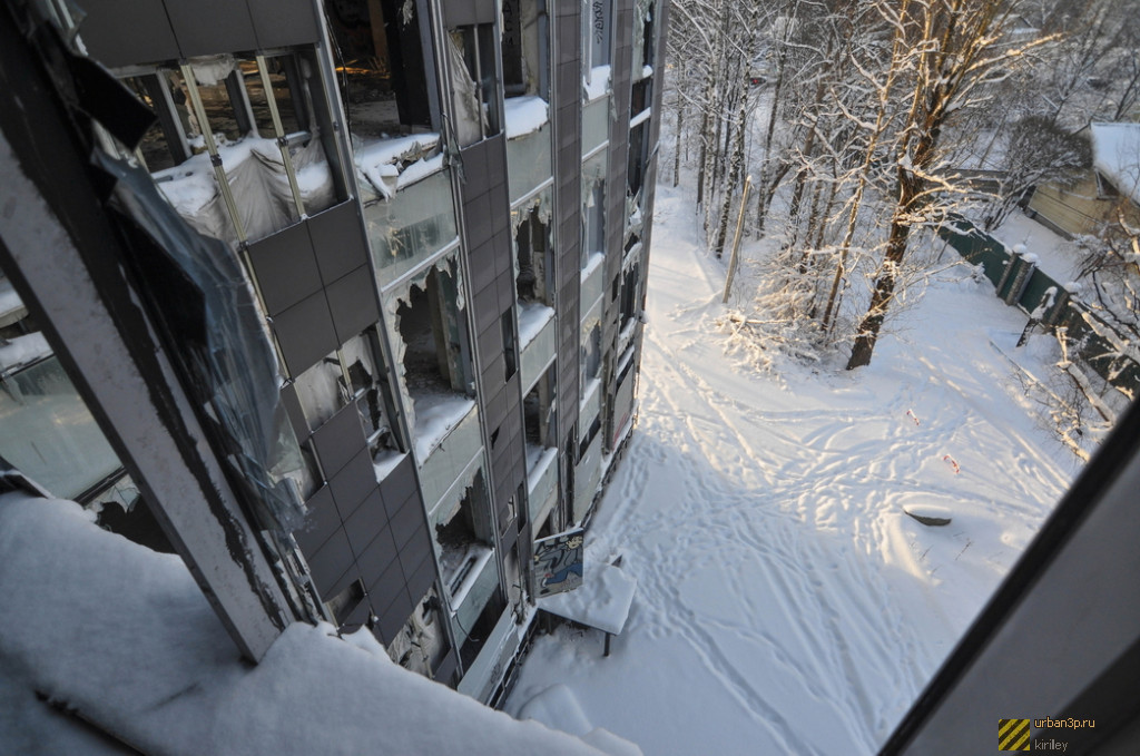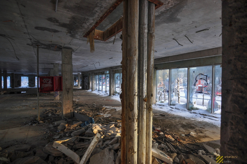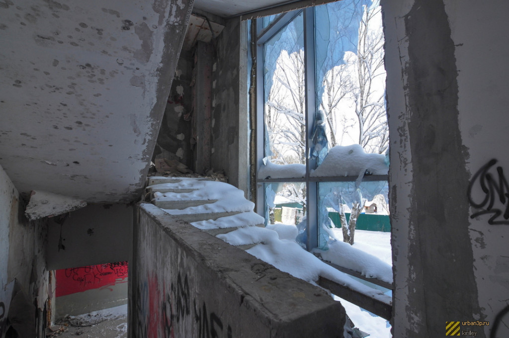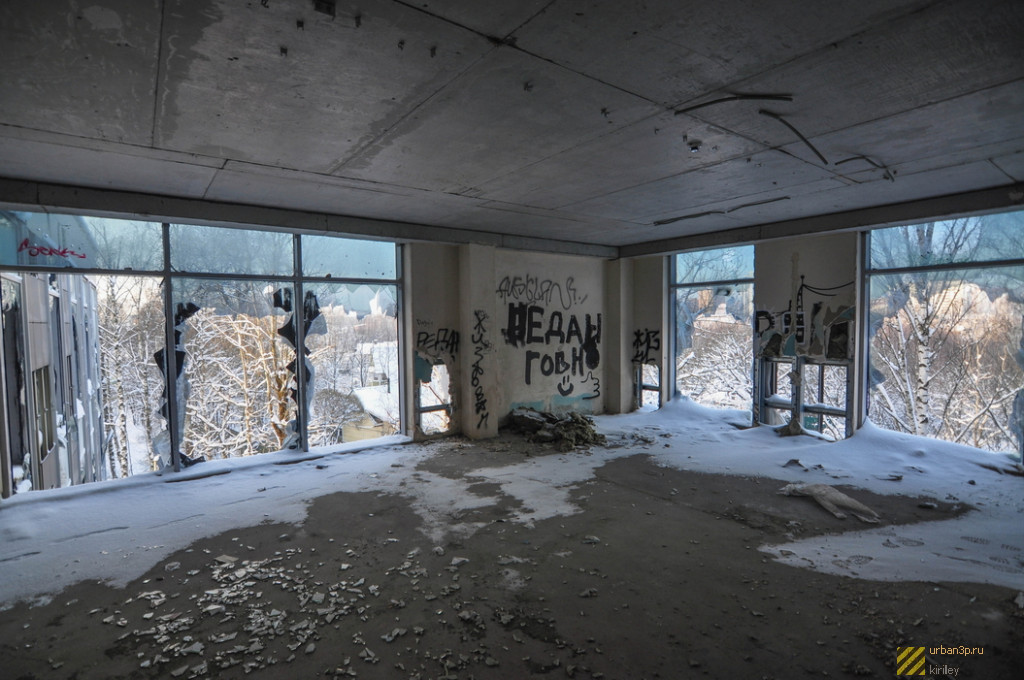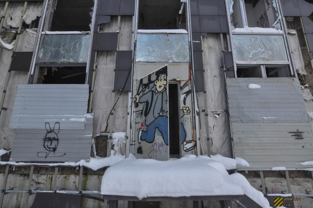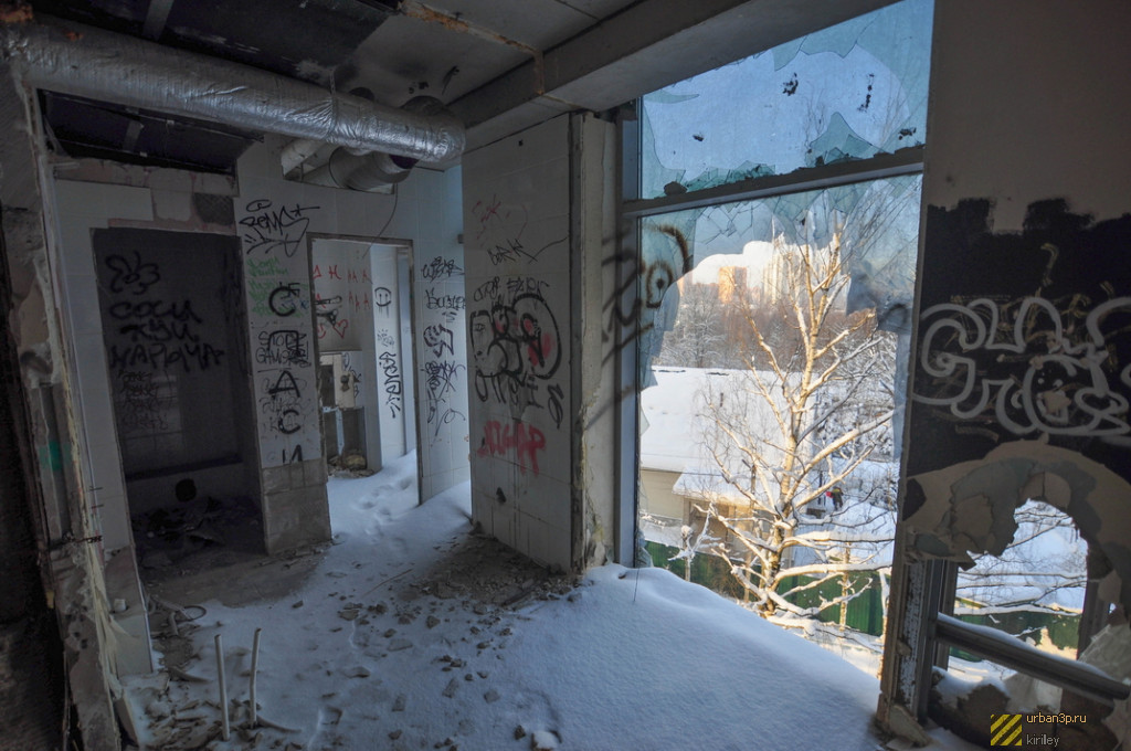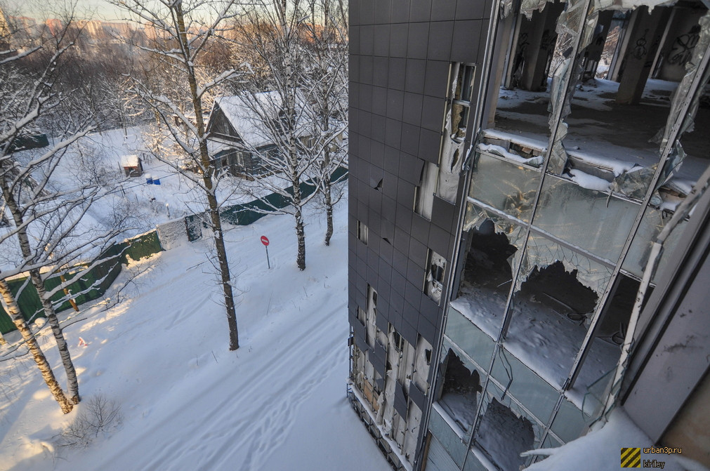 Трехэтажный особняк постройки, предположительно, 90х годов. Почему этот большой дом опустел, неизвестно, ведь в здании был сделан новый ремонт, фасад в очень хорошем состоянии, на территории высажены декоративные хвойные деревья, которые идут по периметру участка. Видно, что дом оставлен уже давно, приблизительно, в начале 10х. Вся территория заросла и завалена мусором, газ отключен. Оставлены некоторые вещи и техника, видны следы мародерства....