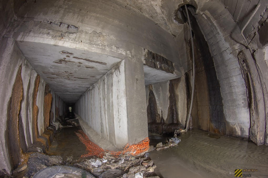 Главной особенностью системы является арочный коллектор высотой 7 метров, построенный перед выходным порталом.