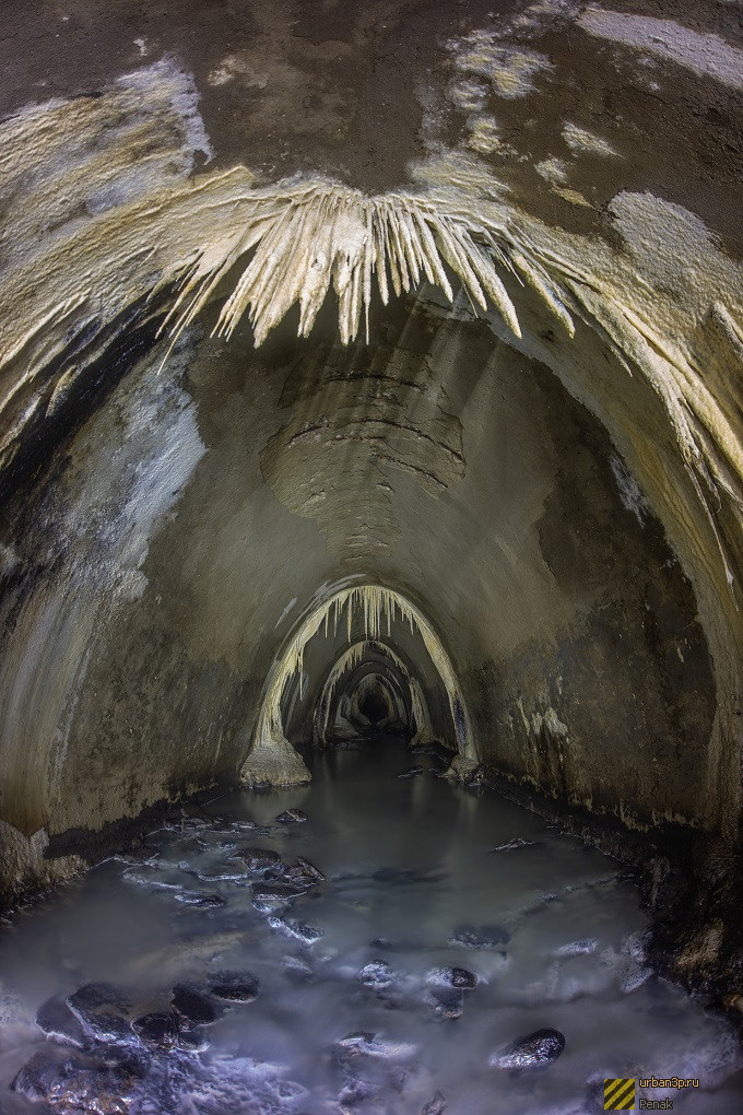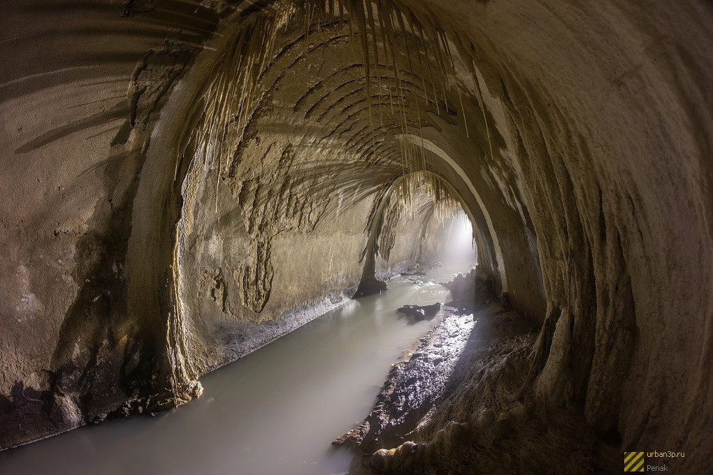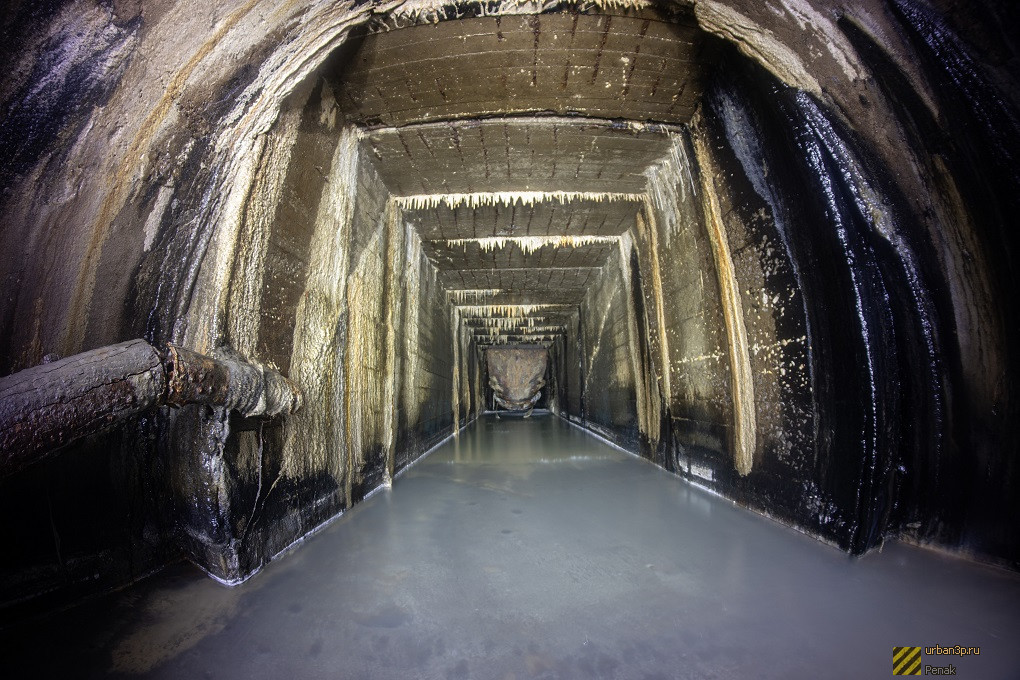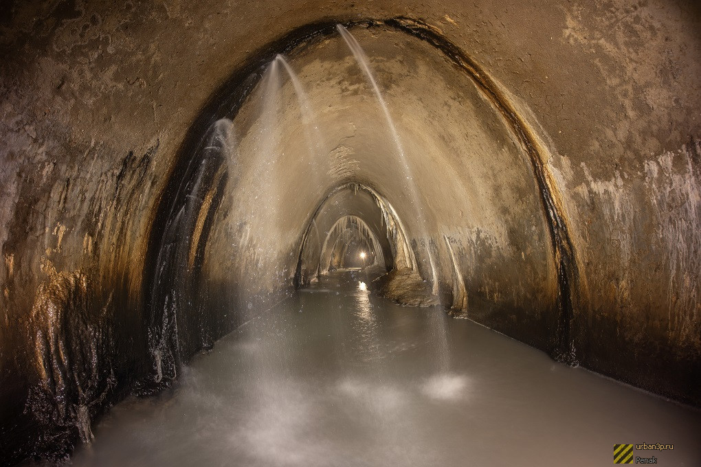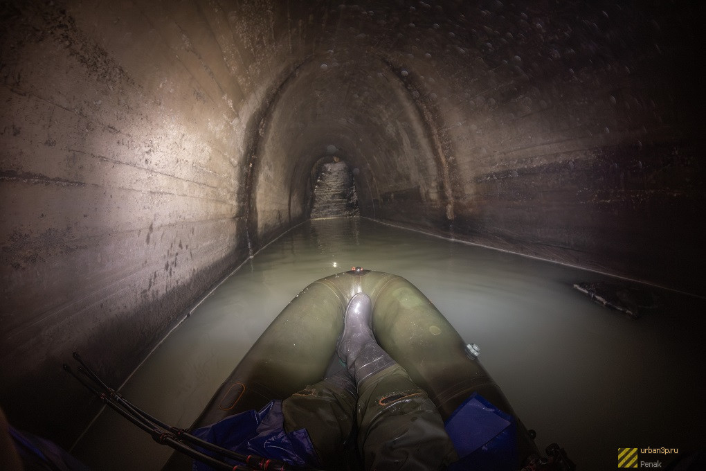 Основной участок арочного коллектора (длина ~1км, высота около 3,5м) проходим в бахилах.