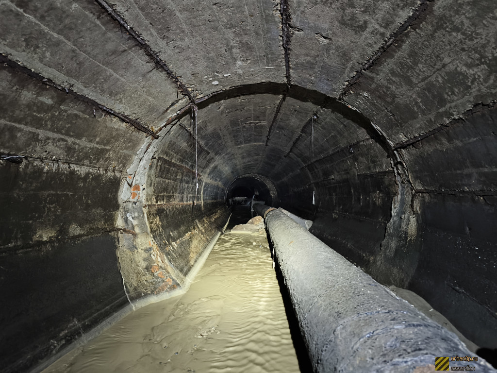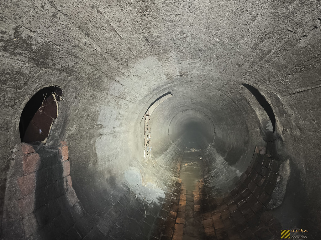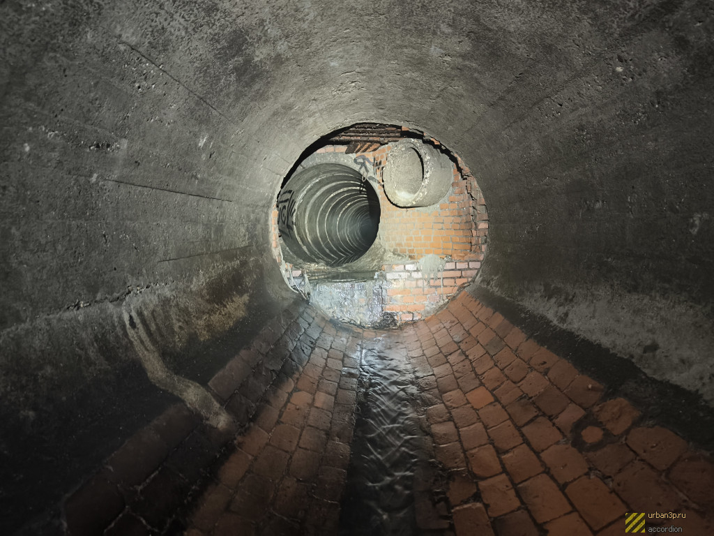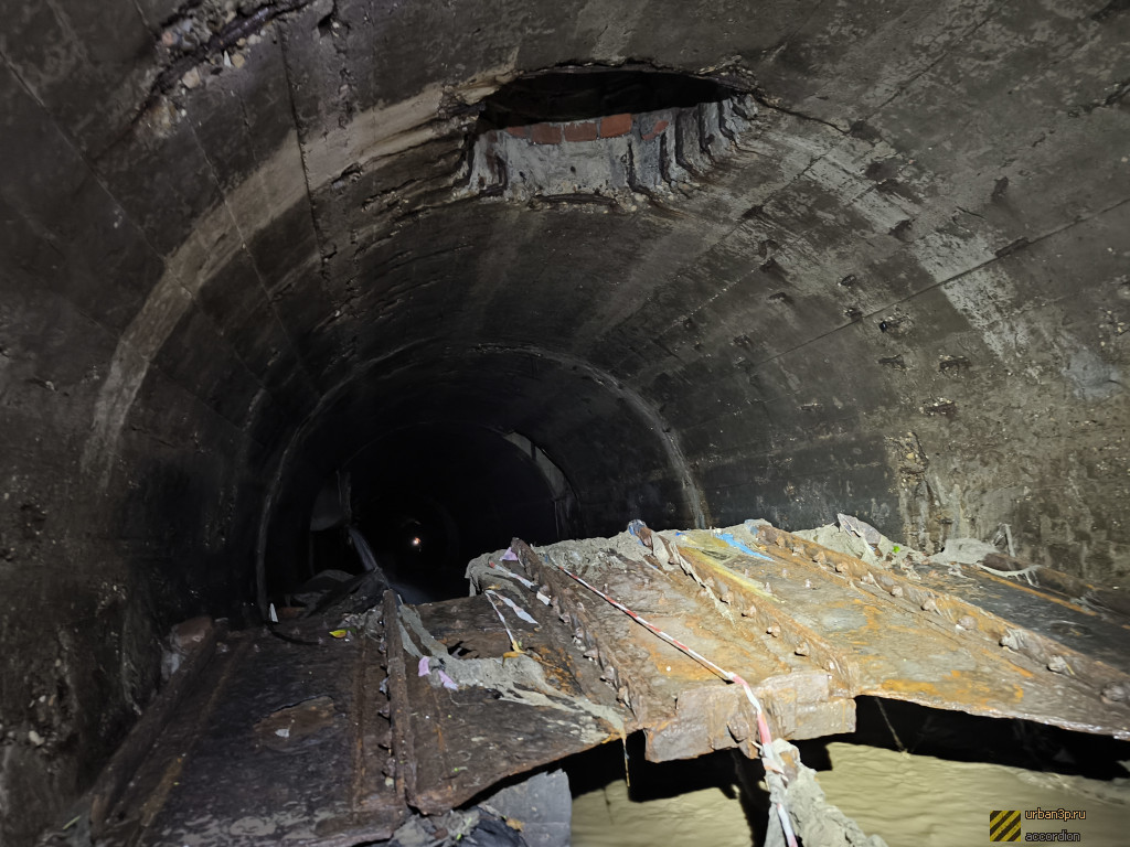 На достаточно большом участке коллектор имеет крайне нехарактерную для Москвы форму — круглый коллектор с бордюром. Дно по большей части выложено кирпичом. Часть идёт в двух коллекторах (2 и 3 метра в диаметре), которые ветвятся в притоках, но позже сходятся в один.
