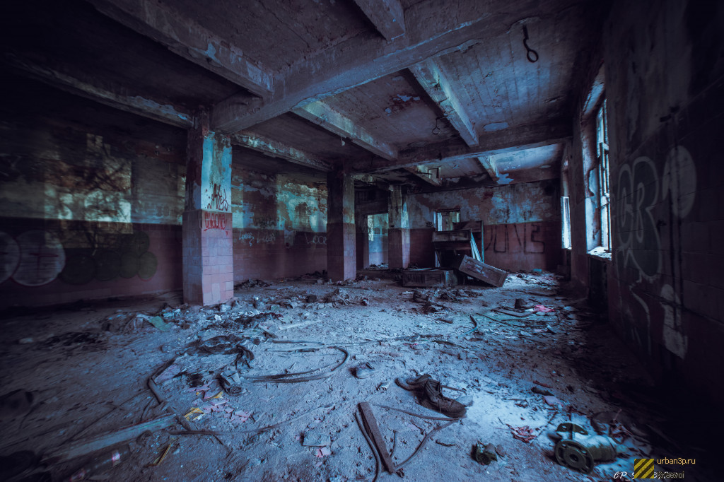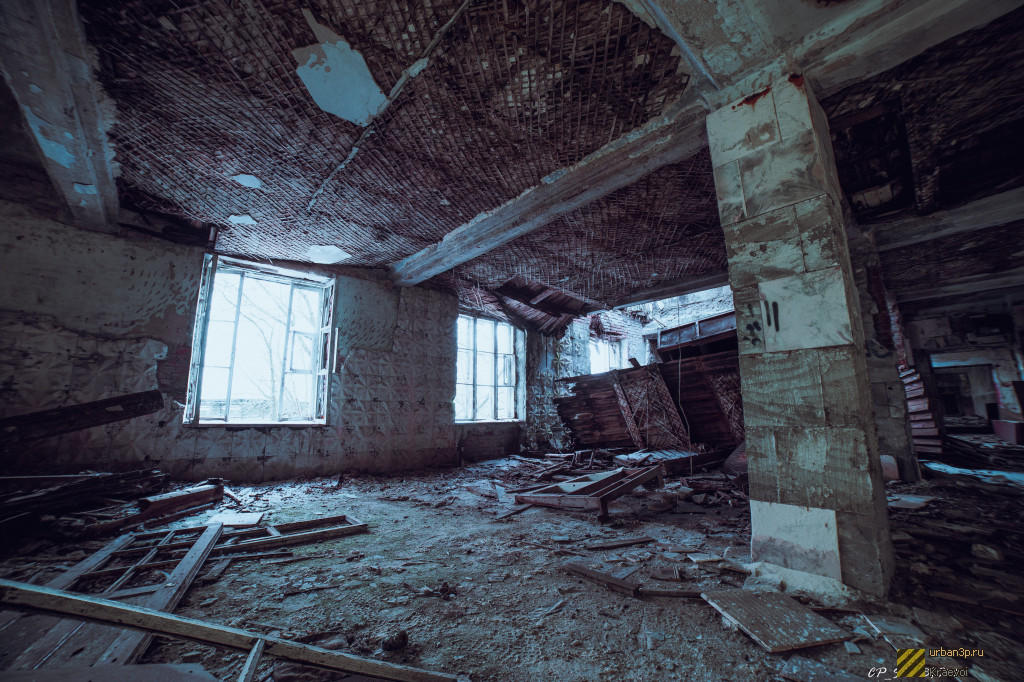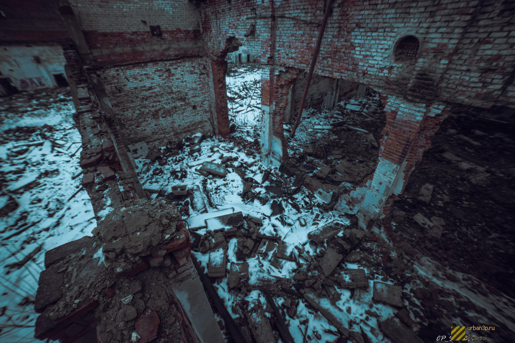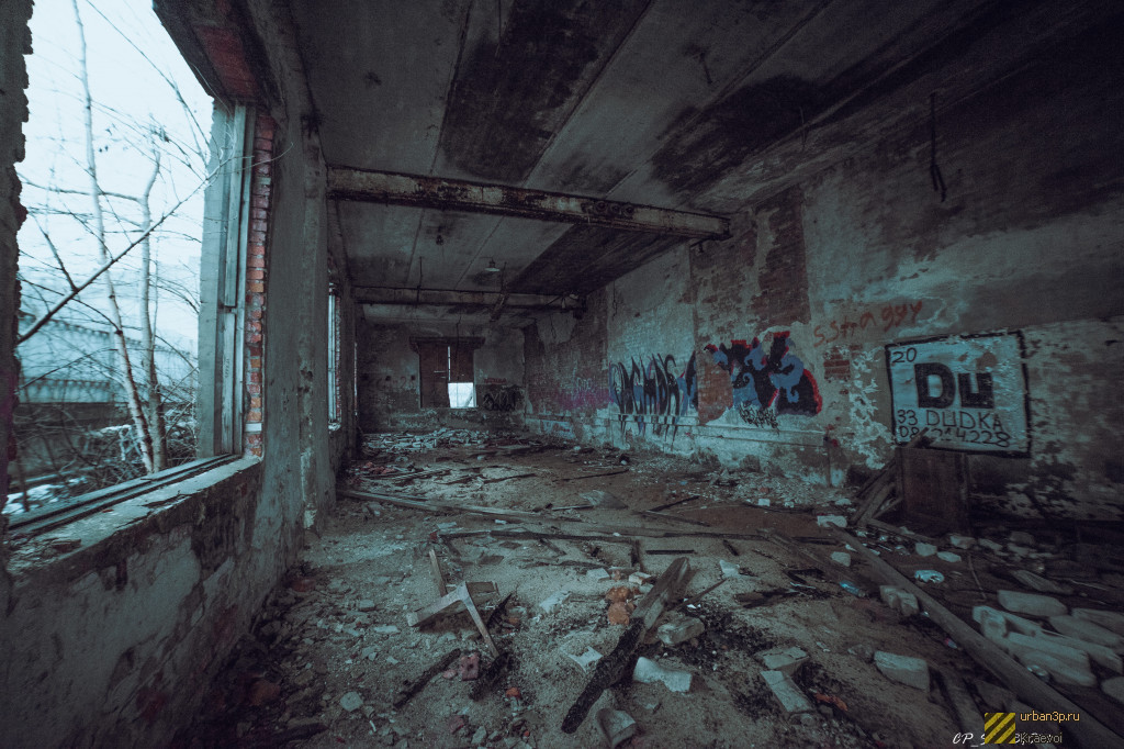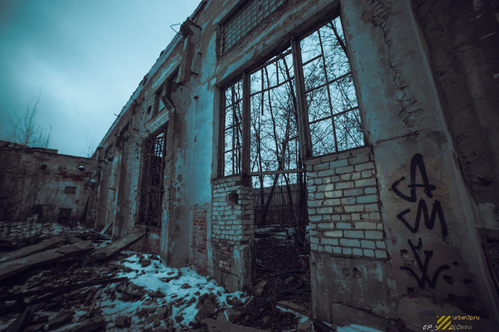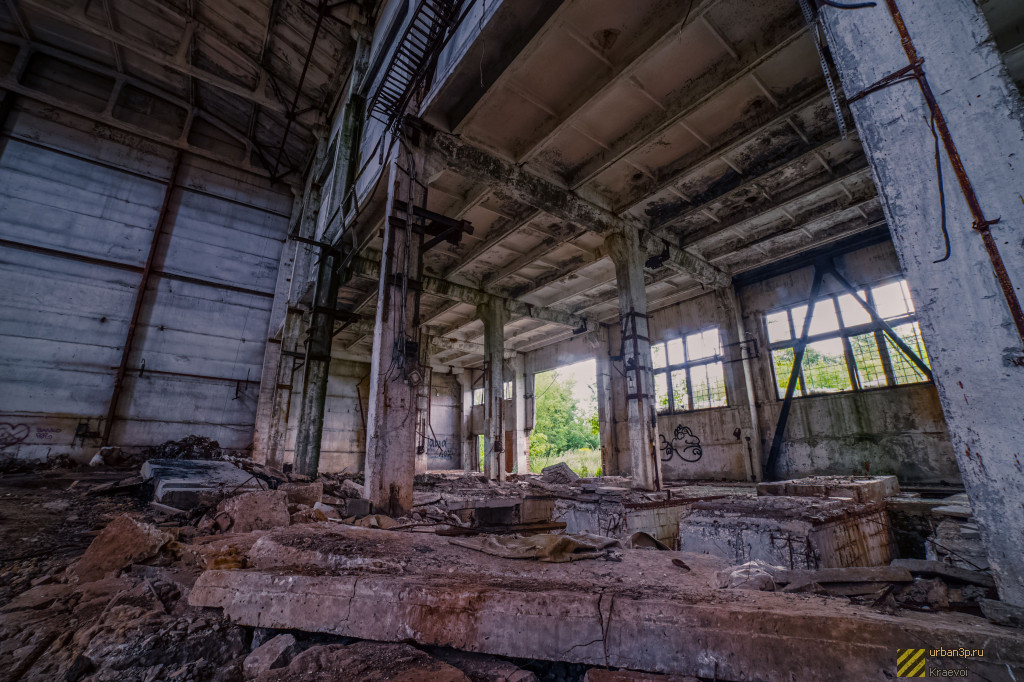 2025 год: Цех пустой, внутри обвалившиеся лестницы, в некоторых местах провалился потолок. На территории рядом - развалины. Охраны нет.