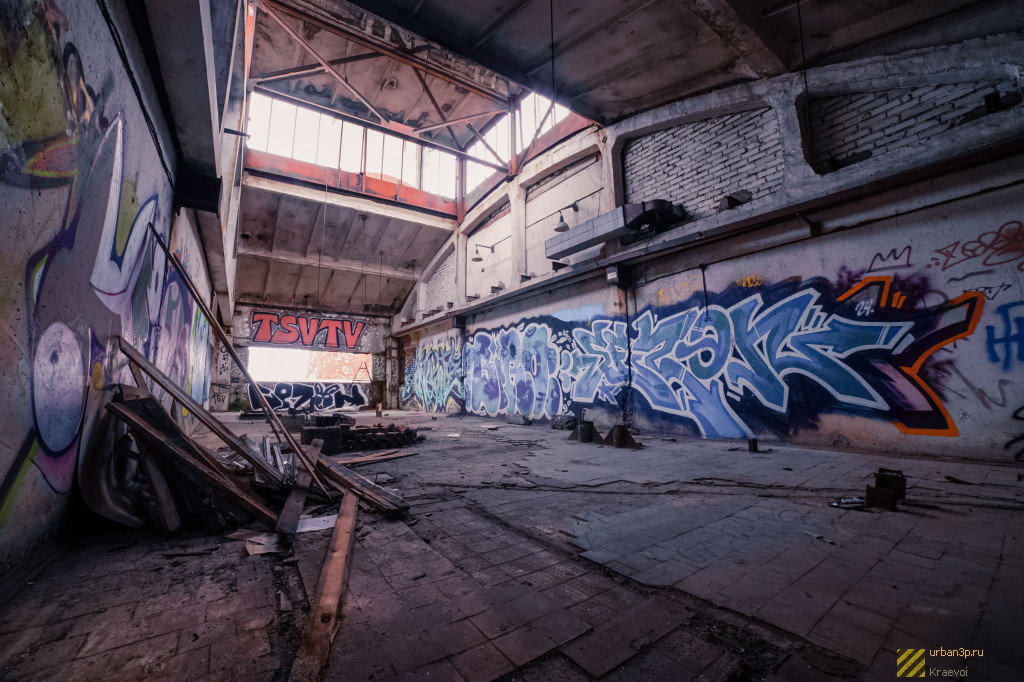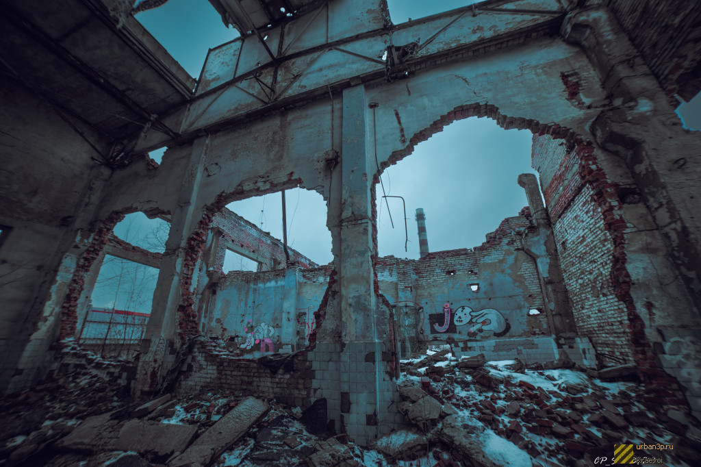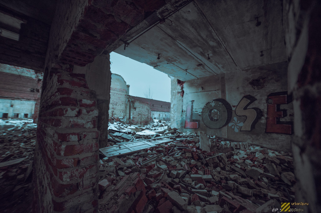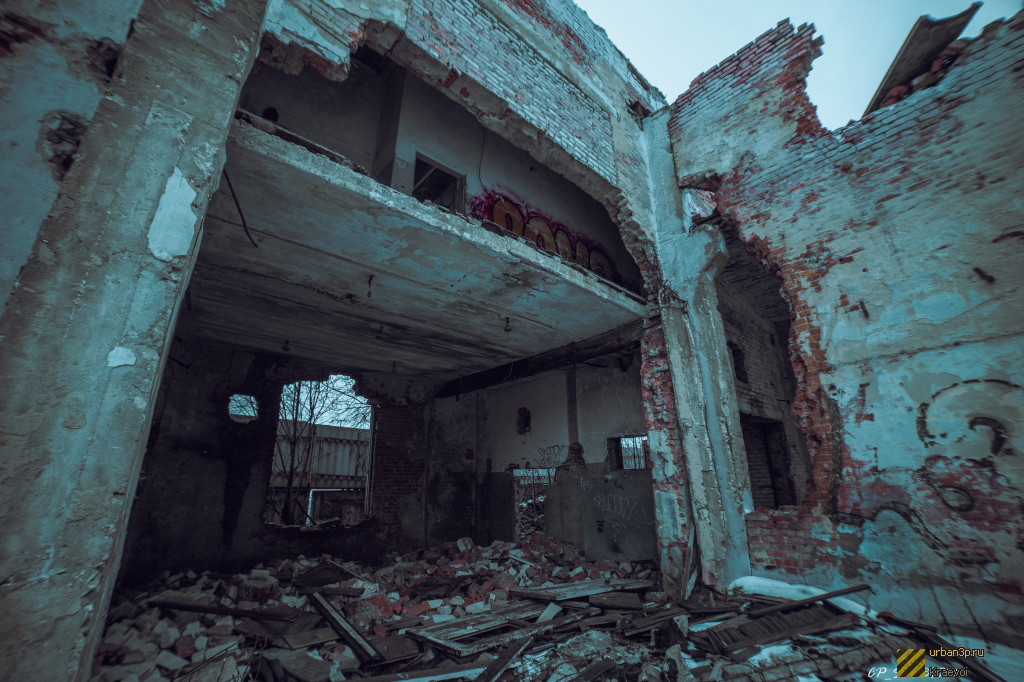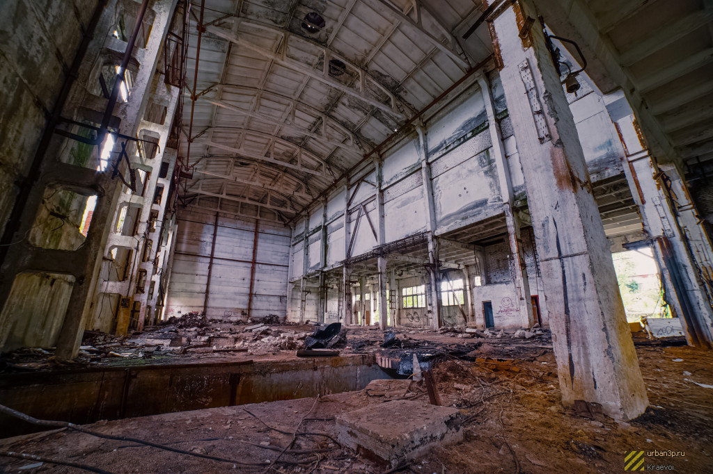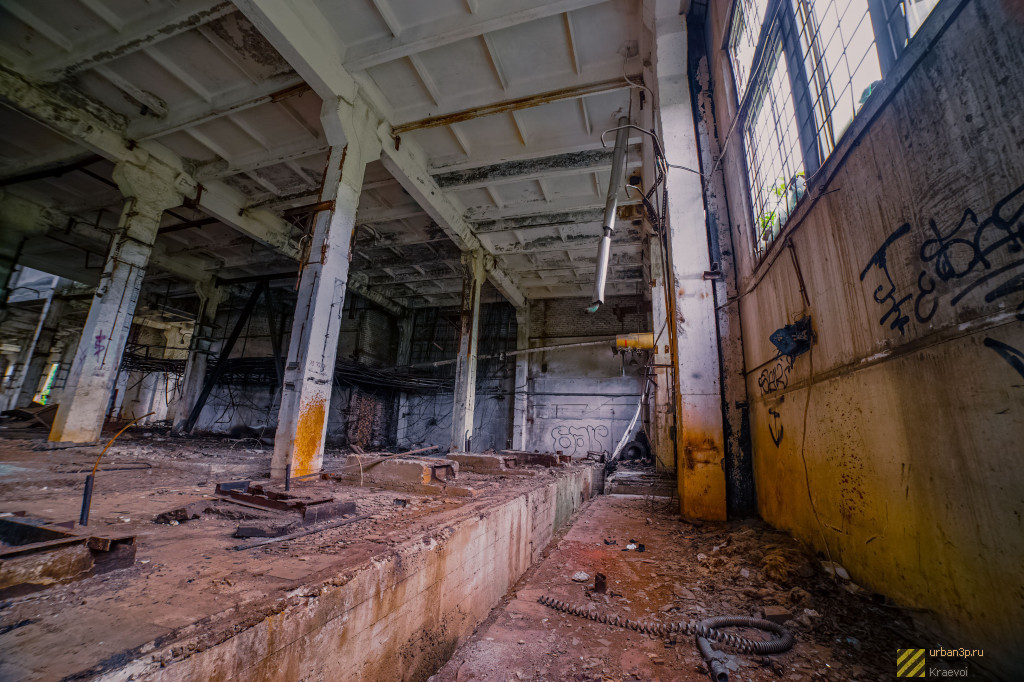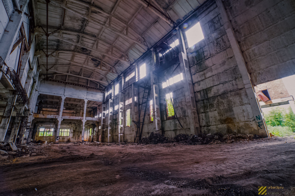 Сама территория завода почти вся снесена, только в правой части остались интересные места.