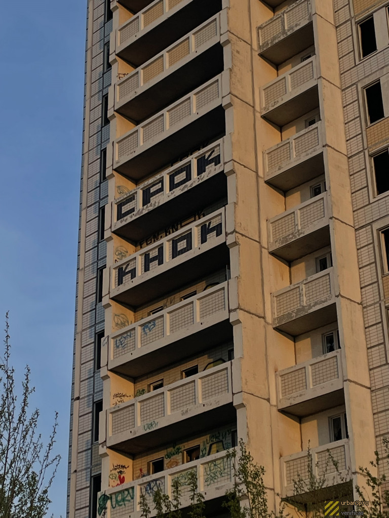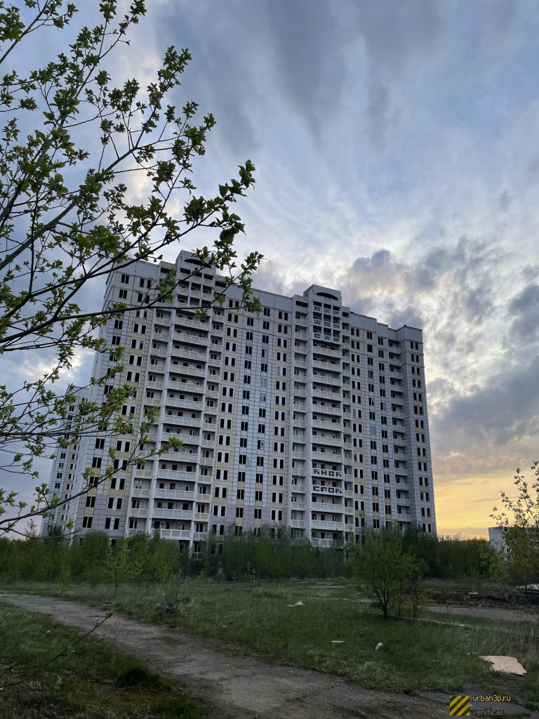 Возведенный на месте бывшей войсковой части ЖК, состоящий из более чем десятка жилых домов разной степени готовности. Уже 5 лет местные власти собираются достраивать или как-либо узаконить уже отстроенное. Какие-то дома застыли на уровне десятого этажа, другие внутри квартир уже имеют установленные межкомнатные двери. Строительная техника по большей части вывезена, но около центрального заезда на стройку все еще обитают рабочие и охрана.