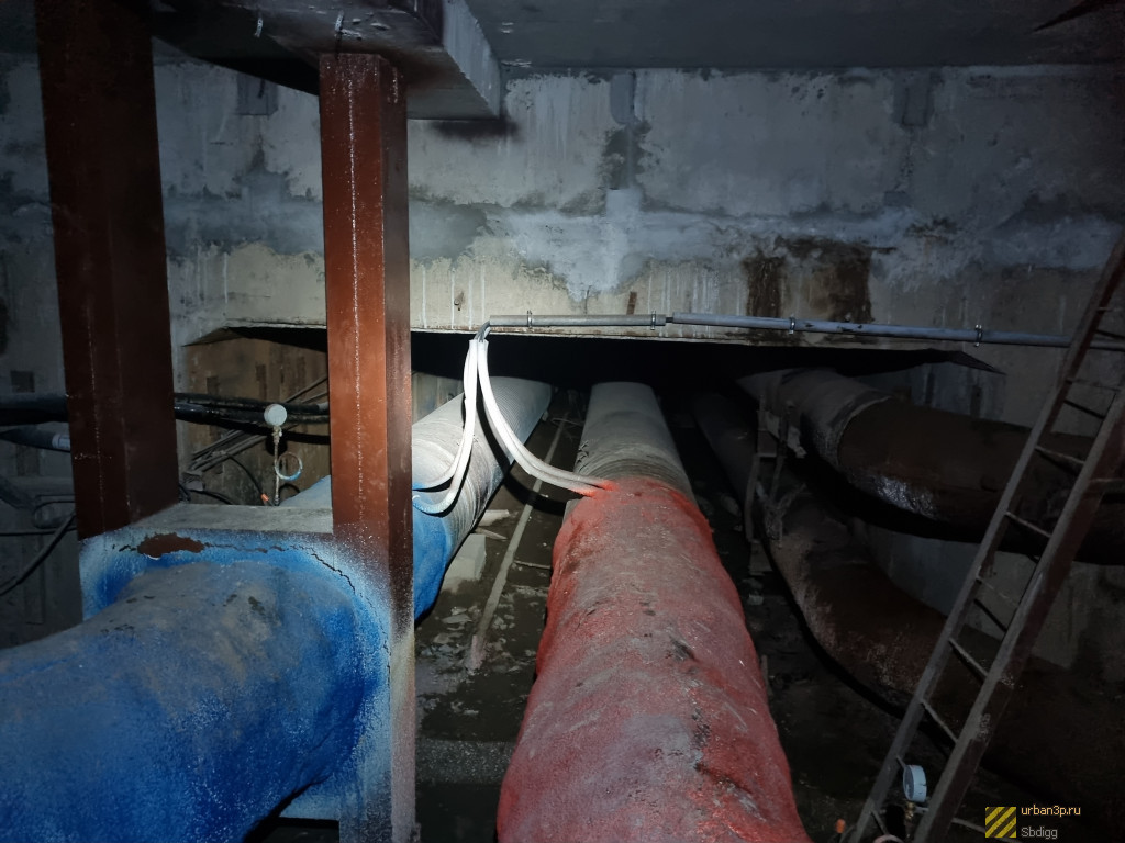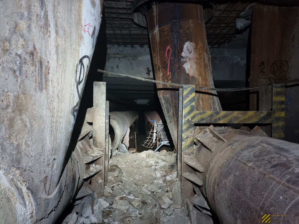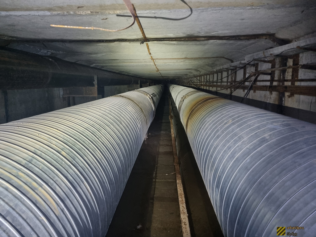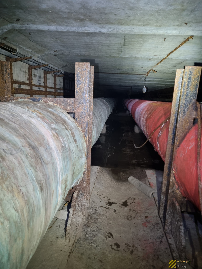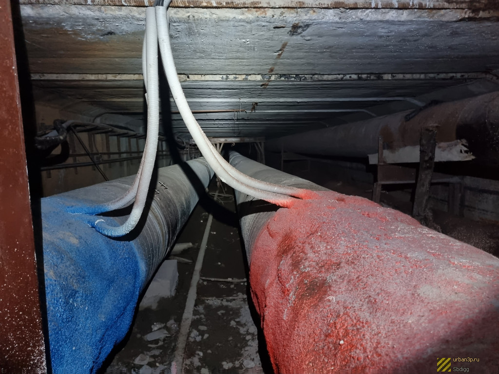 "Горячая часть" - коллектор, протяженностью 300 метров, по которому идут трубы ГВС и отопления от ТЭЦ под железной дорогой, на середине коллектора магистраль обрезана и через врезку отходит в сторону, где без коллектора в коробах проходят новые трубы. Дальняя от ТЭЦ половина "горячего" коллектора заброшена и местами подтоплена.