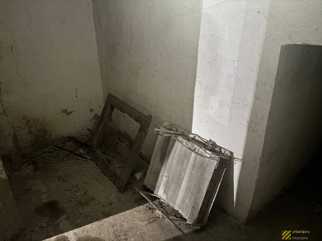 Отличительной чертой этого недостроя является, что под ним располагается убежище. Тоже недостроенное. Это убежище рассчитано примерно на 300 укрываемых. В зимнее время промерзает и при желании есть возможность покататься на коньках.