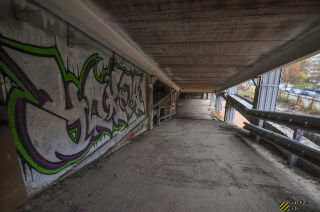 Заброшенный железнодорожный мост вблизи аэропорта «Толмачево». Этот пусть соединял склады ГСМ и почты при аэропорте с городом, но в 90х был разобран. Рельсов нет.